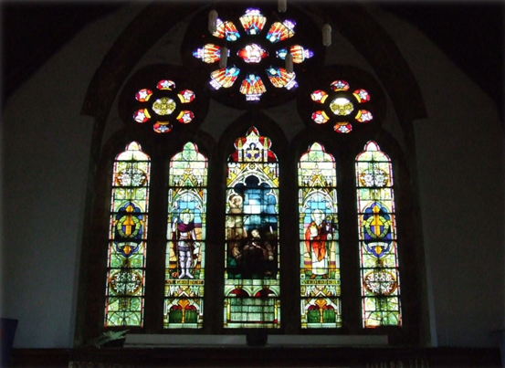 The altar window inside St Mary’s depicts the ultimate sacrifice with a soldier at the feet of Christ on the cross. The other windows depict the Crosses of St George and St Cuthbert. The window was paid for through public subscription and dedicated by Bishop Moule in 1920 at the time of the decication of the War Memorial.