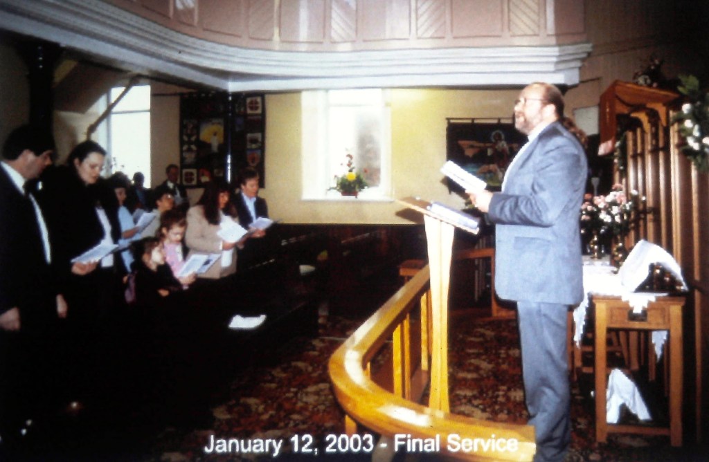 The new design envisaged a flexible layout for the worship area, with no communion rail, and a moveable pulpit. Comfortable seating for almost 100 people was also a design feature, with more space for those standing. Completely separate from the existing ancillary premises, the new worship area will incorporate its own vestry and toilets and unlike the 1871 building will allow access for those with disabilities. With the decision made members of the church set about raising funds to help build the new church, and with the decision taken to demolish and clear the site a final service of worship took place on January 12th 2003. The schoolroom attached to the chapel became the worship area during the period of rebuilding the new church.