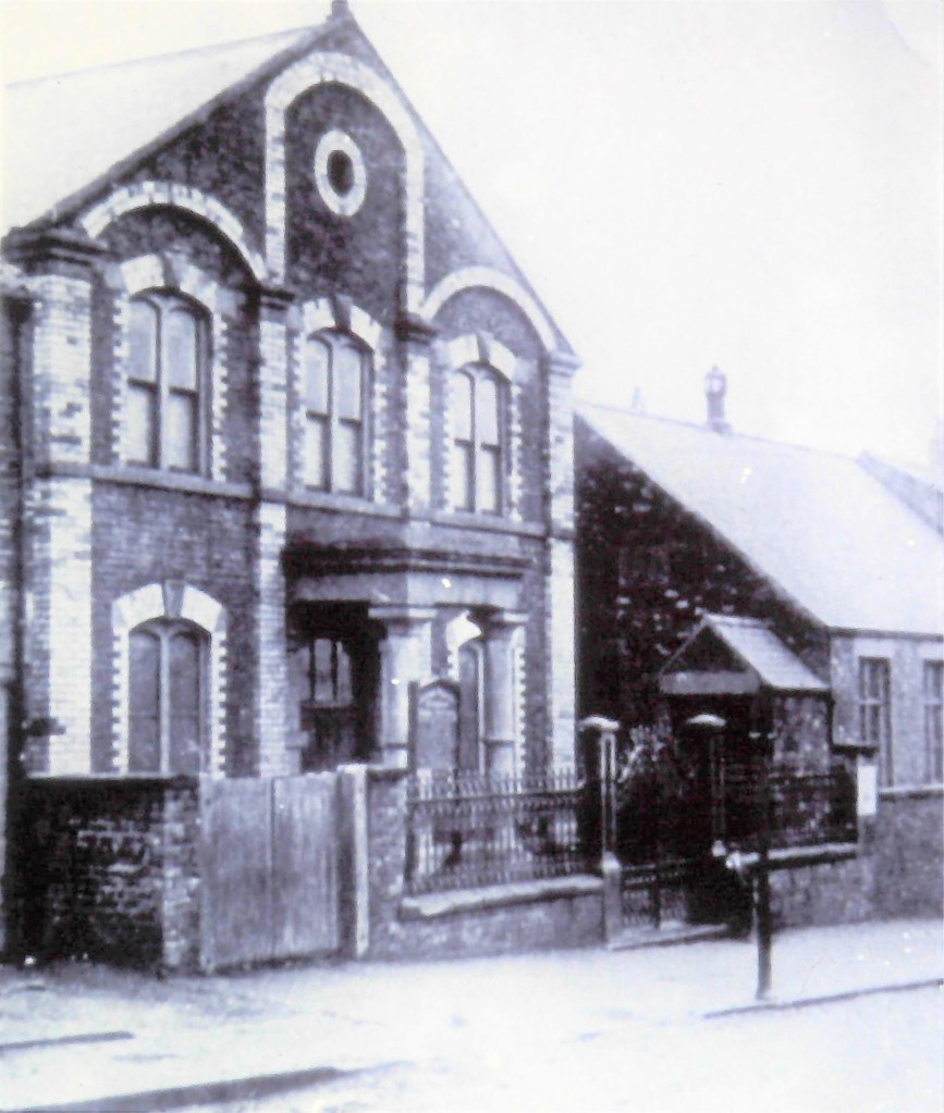 The foundation for the new chapel was laid at Easter, 1865. It was on the west side of the main road, and was probably on its own at the time, but it was soon joined by the Co-op. and other buildings. The chapel was not opened until 1866 – apparently a gale blew the roof off and delayed the opening. The story is told that, when setting up tea tables for the opening day celebrations, members had to improvise somewhat because the workmen hadn’t finished, and some of their tools and materials were still lying around.