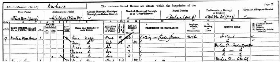 The Duffy family were still living in the same residence in Framwellgate Moor in 1901.