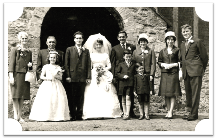 Doris & Bill – back left, daughter Christine in front. Son Ken with bride Jean,