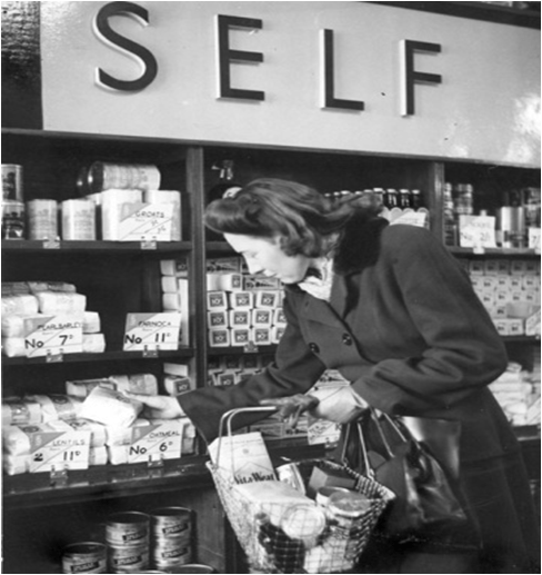 In 1942 the first self-service shop was opened by the London Co-operative Society. (Picture taken from the Co-op Wholesale Society’s website). Hetton Co-op went self-service in 1960.