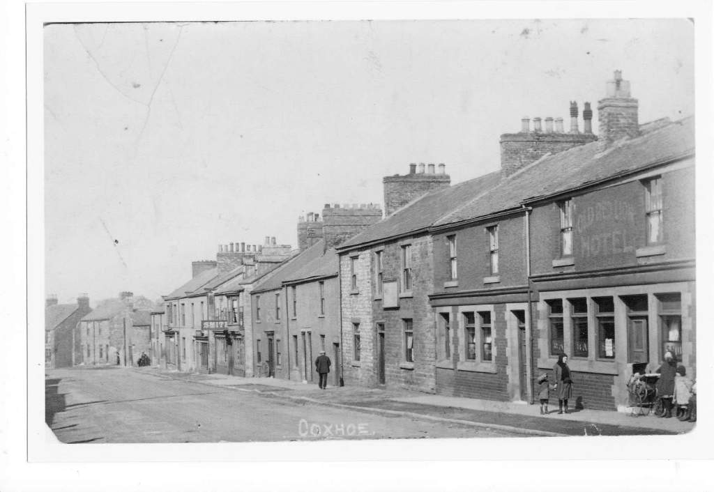 The entrance for Jack Scorer’s cobbler department was on the left along the present drive towards Coxhoe Timber Services workshop. Arthur Collingwood and the Griffiths family were shoe makers and cobblers. At the back of the store were the stables and carts. This area would later become Gatenbys TV repair shop and today in The Rocking Horse Rehearsal; Rooms.