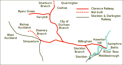 The Stockton and Darlington offered to buy the lease but were outbid by Henry Blanchard of London, who gave “an enormous price on condition they should use their efforts to support the Clarence Railway Bill by reason of their numerous family connections to considerable influence”.