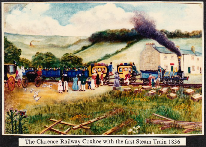 1836: Clarence Railway opens for passengers from Stockton to Durham. The train stopped at Coxhoe and passengers transferred to horse drawn carriage to Durham.